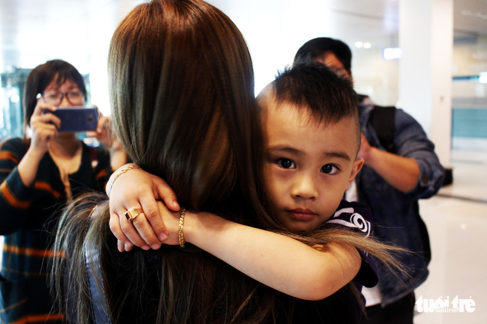 Bé Tiết Tiến Khải ôm cổ mẹ thật chặt - Ảnh: HẠNH NGUYỄN