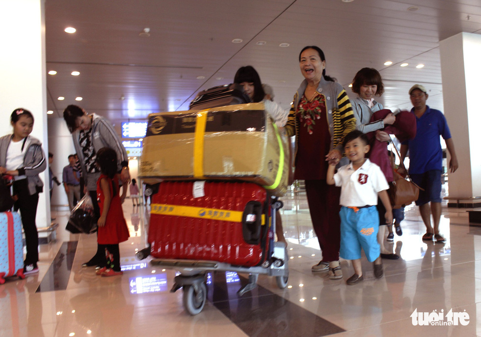 Đúng 9h sáng ngày 10-2 chuyến bay VN6571 hạ cánh xuống sân bay Cần Thơ, người thân các cô dâu Việt xúm nhau lại để được nhìn con sau nhiều năm xa cách - Ảnh: HẠNH NGUYỄN