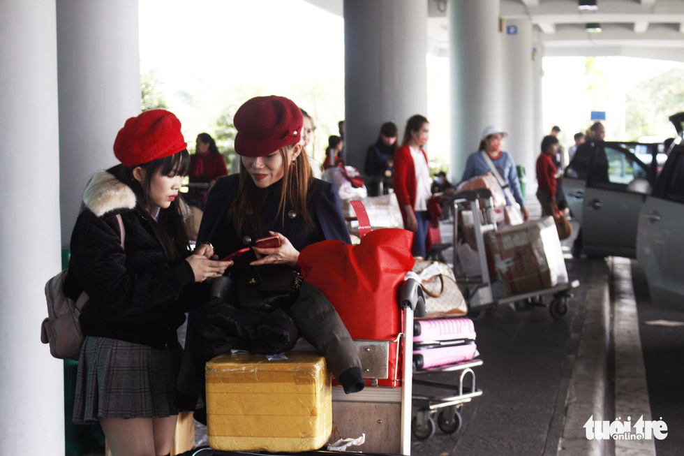 Cảnh đón cô dâu Việt rộn ràng khắp sân bay quốc tế Cần Thơ hôm nay - Ảnh: HẠNH NGUYỄN