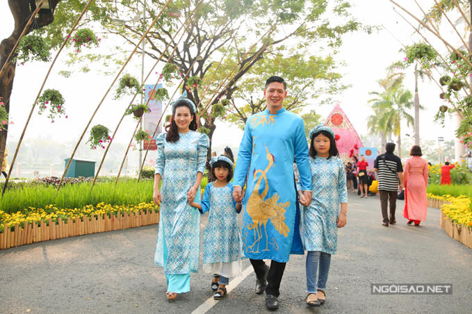 Hai công chúa tỏ ra hào hứng khi được ngắm đường hoa lung linh sắc màu. Năm nào vào những ngày giáp Tết Bình Minh cũng ngừng chạy show, dành thời gian đưa vợ con đi chơi, chụp một bộ ảnh kỷ niệm