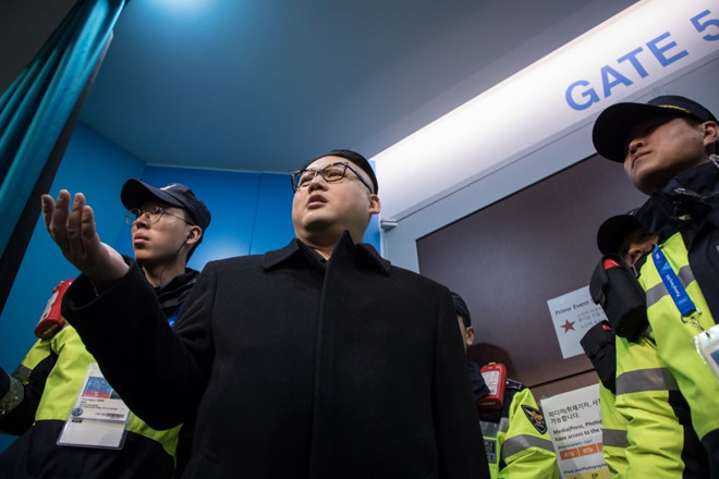 Reuters miêu tả một vài cổ vũ viên Triều Tiên đã cười khúc khích rồi ngay lập tức quay đi khi một người với bộ dạng tương tự nhà lãnh đạo Kim Jong Un xuất hiện và vẫy tay với đám đông trong trận đấu giữa đội khúc côn cầu thống nhất liên Triều với đội Nhật Bản tại Olympics mùa đông.