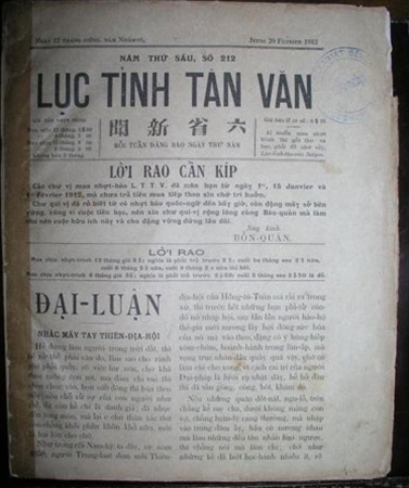 Báo Lục Tỉnh Tân Văn phát hành năm 1912 viết về những băng đảng Thiên Địa Hội mất tôn chỉ phản Thanh phục Minh thoái hóa thành hoàng hồ.