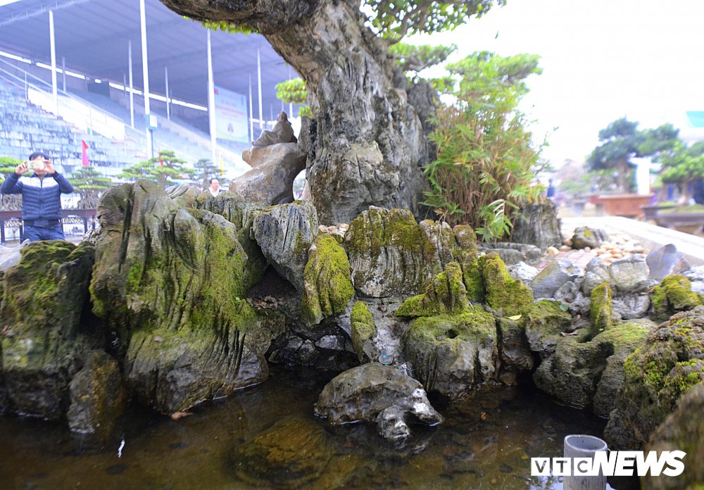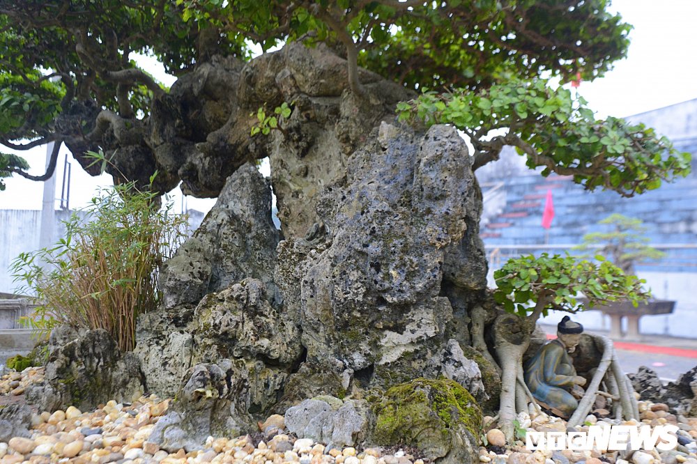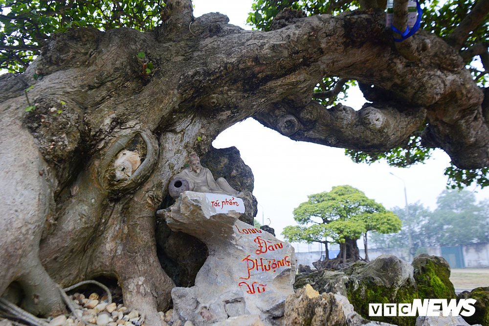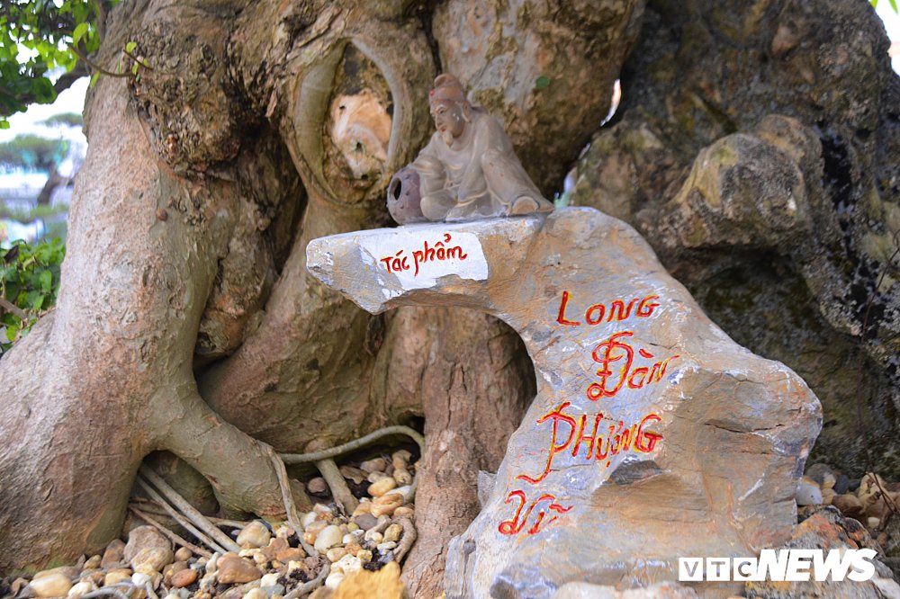 Phía gần gốc cổ duối siêu phẩm có đặt một tảng đá khắc chữ “Long đàn Phượng vũ” và các tảng đá khác ôm trọn vào xung quanh gốc cây.