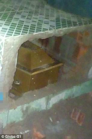 Quan tài bị lôi ra khỏi ngôi mộ bằng đá. Ảnh: Globo G1