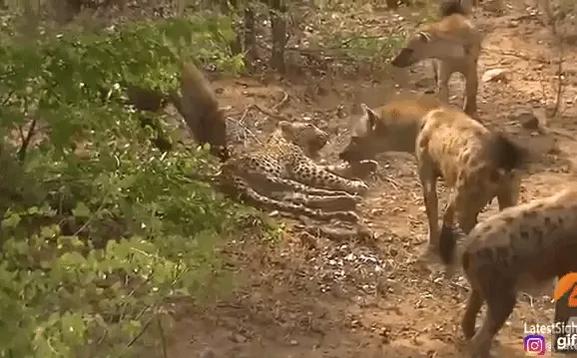 May mắn cho con báo trên, sau chút sức tàn phản kháng, lũ linh cẩu cũng bỏ đi, nhưng điều đó không làm cho tình hình khả quan hơn, con thú già vẫn phải gắng sức chỉ để bước từng bước một trên đôi chân bị thương và cái bụng lép kẹp.