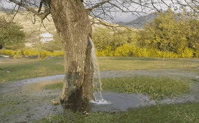 Nước chảy xối xả từ một thân cây ở Montenegro khiến nhiều người bất ngờ.