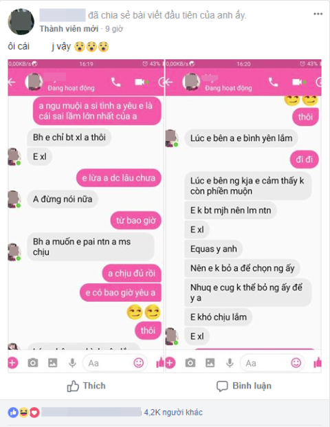 Chẳng hiểu cô nàng bắt cá hai tay ấy vui tính quá hay là sợ mất cả 2 chàng trai mà giải thích vô cùng hack não: "Ở bên anh em thấy bình yên lắm, nhưng bên người ấy lại không thấy muộn phiền". Bối rối thực sự!
