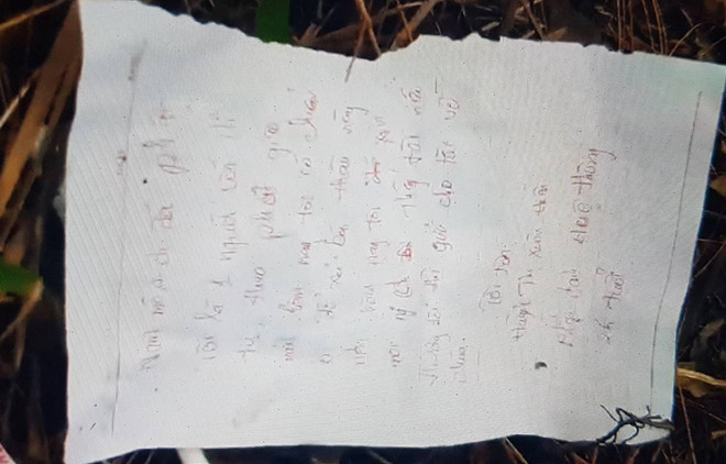 Tờ giấy được cho là thư tuyệt mệnh để lại hiện trường