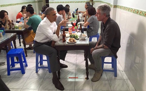 Một bức ảnh do ông Bourdain, nhà sản xuất chương trình truyền hình du lịch và ẩm thực người Mỹ, đăng trên mạng Instagram mới đây cho thấy chiếc bàn được triển lãm trong quán bún chả ở Hà Nội. Bữa ăn nổi tiếng của Tổng thống Obama trong chuyến công du Việt Nam hồi tháng 5 năm 2016 trị giá khoảng 6 Mỹ kim.