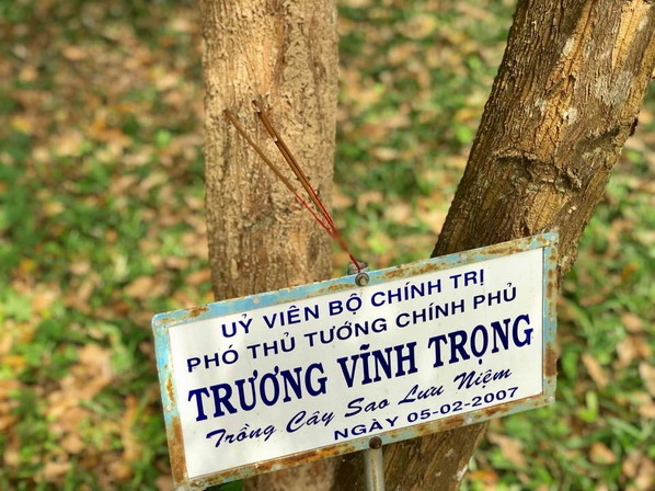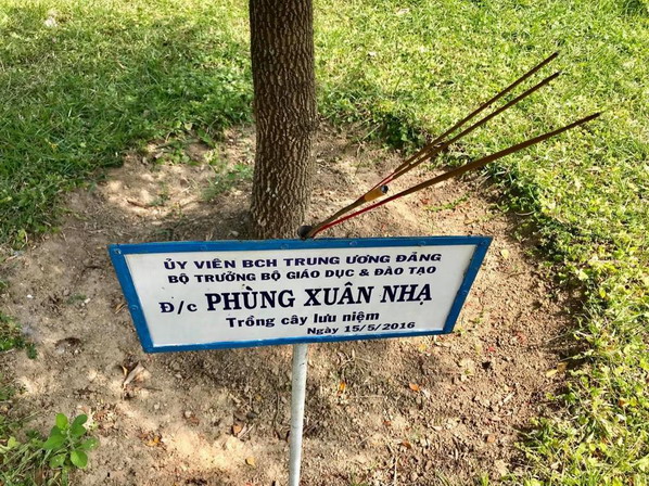Đây là bia tưởng niệm trồng cây, nếu không nhìn kỹ tưởng là bia mộ của mấy ông quan VC.