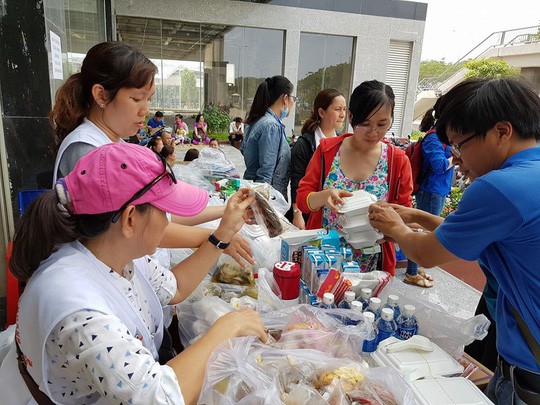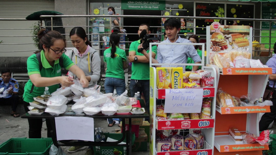 Ngoài thức ăn có sẵn trong các cửa hàng, các đơn vị cũng tổ chức nấu các phần cơm miễn phí cho "bà con ở chung cư".