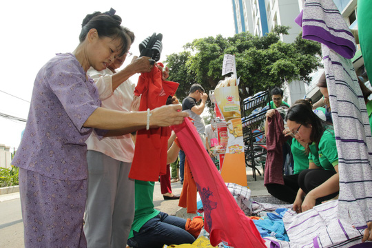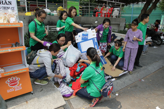 Ngoài thức ăn, quần áo và dày dép các kích cỡ cũng được đưa đến để phục vụ miễn phí cho người dân.
