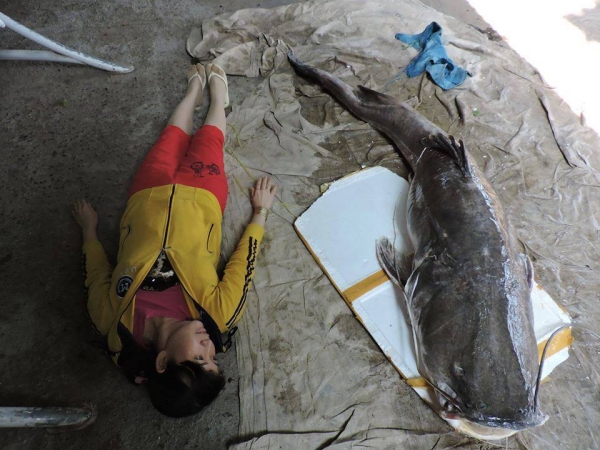 Con cá lăng “khủng” có chiều hơn gần 2,5 mét. Ảnh: Thanh Hải
