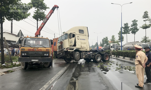 Old  Default Tông đổ hai cây, tài xế container tử vong tại chỗ