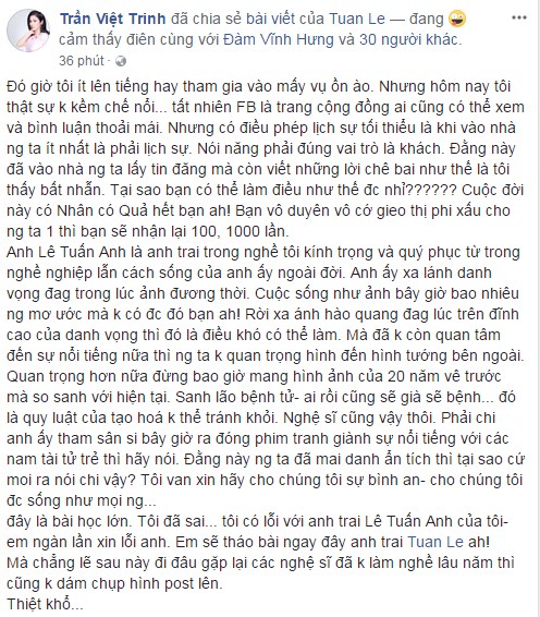 Việt Trinh và Lê Tuấn Anh đều bức xúc lên tiếng vì bị soi mói