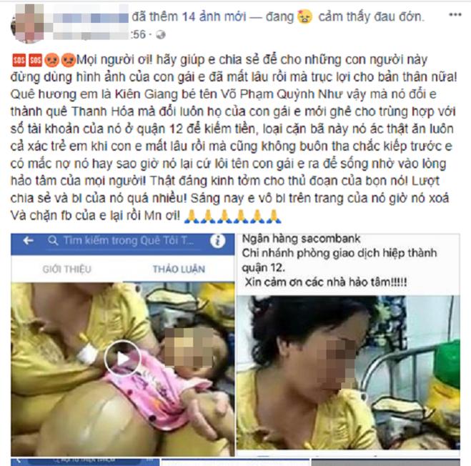 Theo chị Linh, nội dung bài viết trên thực chất lấy từ một status kêu gọi giúp đỡ con chị của một mạnh thường quân, nhưng từ tận... tháng 10/2017. Đến tháng 1/2018, thời điểm bé Như vừa mất, status này bất ngờ được đào bới lại và sau đó sửa đi rất nhiều chi tiết để trục lợi .