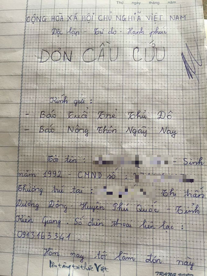 Báo NTNN/Dân Việt tại ĐBSCL vừa nhận được đơn kêu cứu của chị T.T.L (SN 1992, ngụ thị trấn Dương Đông, huyện Phú Quốc, tỉnh Kiên Giang).