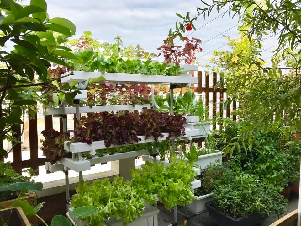 Sân thượng 30m2 phủ kín rau quả sạch của mẹ trẻ đảm đang Hà thành