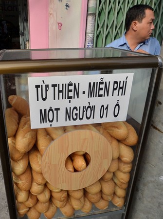 Ở TP.HCM, tại một số địa điểm còn có thùng bánh mỳ từ thiện, miễn phí hay những thùng nước đá miễn phí nằm ở nhiều con phố.