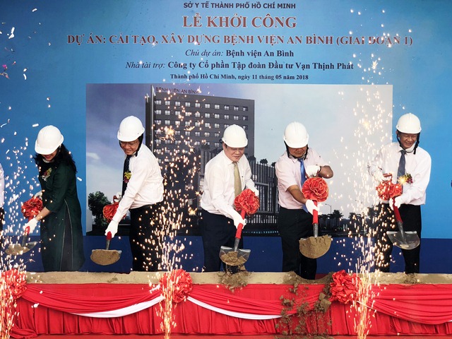 GS.TS Nguyễn Viết Tiến, Thứ trưởng Thường trực Bộ Y tế (giữa) trong lễ khởi công xây mới BV An Bình, bệnh viện có tuổi thọ 116