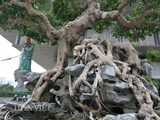 Cây sanh được anh Đạt ghép vào khối đá cảnh càng tạo nên vẻ đẹp của tác phẩm.