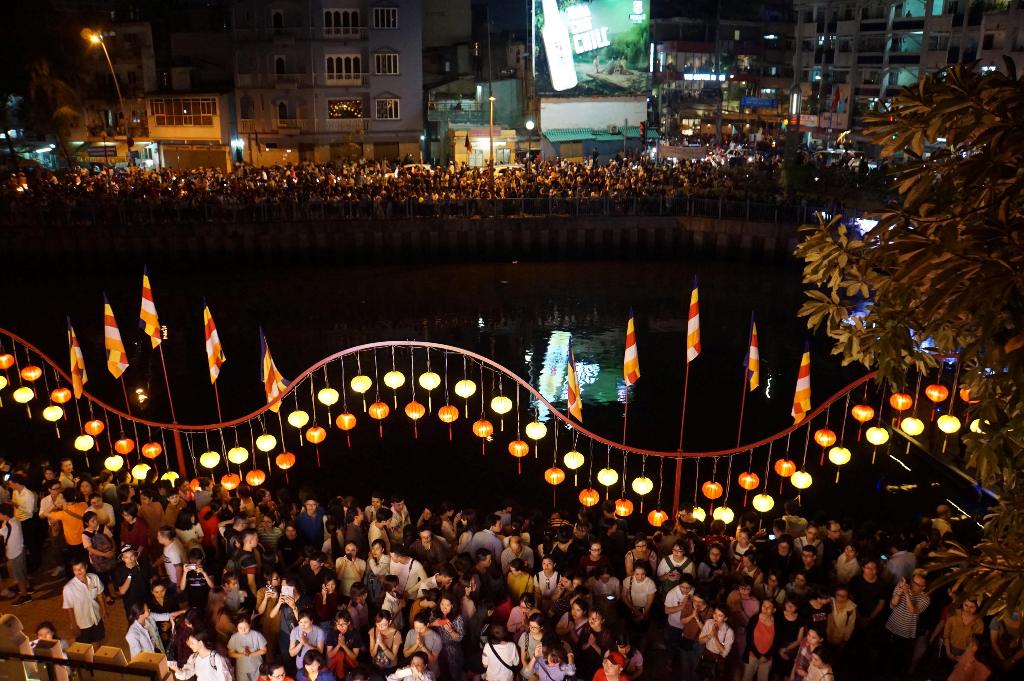 Phật tử khắp nơi đón mững ngày Lễ Phật Đản. Cũng như nhiều địa phương trong cả nước, hàng ngàn người đổ về ngôi chùa nằm bên dòng kênh Nhiêu Lộc – Thị Nghè tham gia lễ hội thả hoa đăng mừng lễ Phật đản. Những hình ảnh đẹp của dòng sông hoa đăng khiến ai cũng xúc động nghĩ về những điều tốt lành nhất.