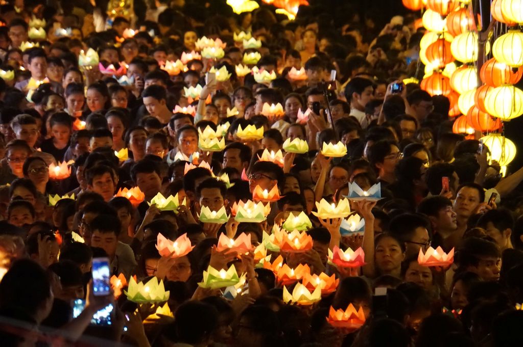 “Biển người” ở kênh Nhiêu Lộc – Thị Nghè khu vực chùa Pháp Hoa chờ tham dự thả hoa đăng