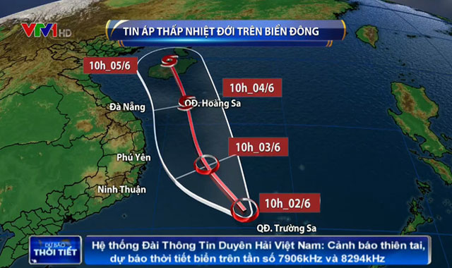 24 đến 48 giờ tiếp theo, áp thấp nhiệt đới đi hướng Bắc Tây Bắc, có thể mạnh lên thành bão. 10 giờ ngày 4/6, tâm bão ở ngay trên vùng biển phía Tây quần đảo Hoàng Sa, cường độ bão cấp 8, giật cấp 10.
