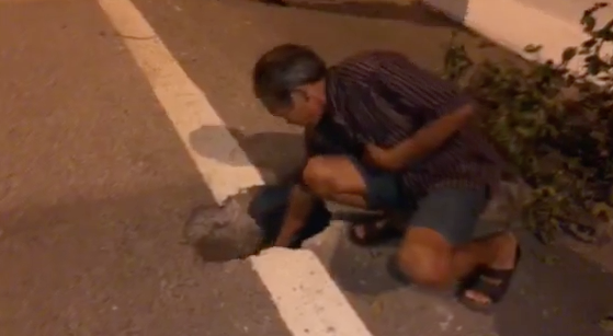 Cát, đá được người dân bốc lên từ một lỗ sụt lún