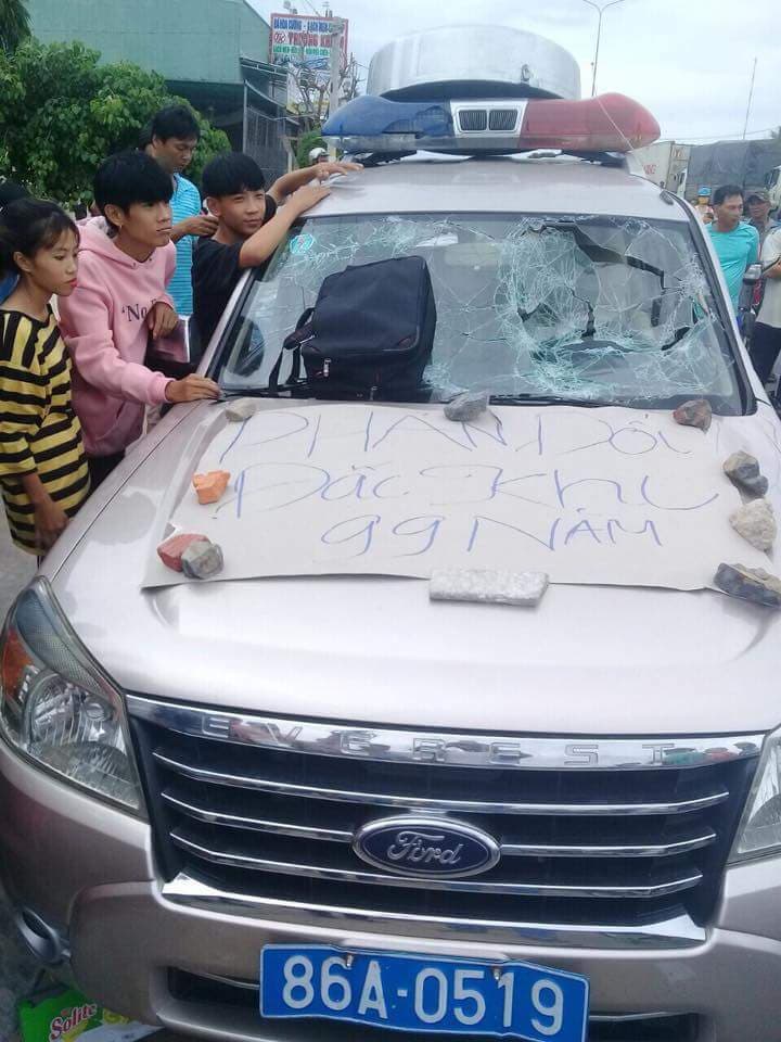 Cùng ngày, tại quốc lộ 1 (thuộc thị trấn Phan Rí Cửa, huyện Tuy Phong, Bình Thuận), nhiều người dân nơi đây tụ tập kéo đến chặn xe để đập phá. Những người dân này bị kích động nên ném đá, đập xe, xông vào đánh lực lượng an ninh.