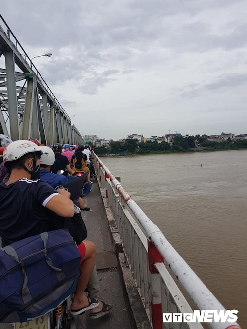 Sự việc khiến giao thông trên cầu Chương Dương ùn tắc một đoạn dài.