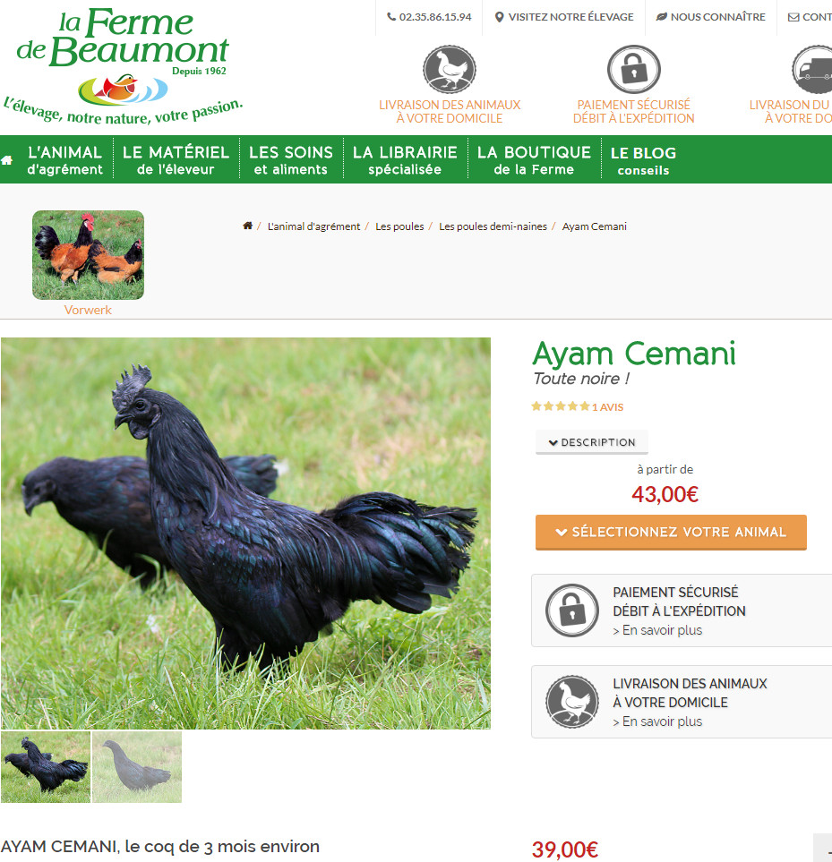 Người phương Tây tin rằng khi nuôi gà đen Cemani trong nhà sẽ mang lại nhiều may mắn, nó sẽ che chở, bảo vệ cho gia đình và giúp vượng thế trong làm ăn. Vì thế mà giá trị của loại gà này rất cao. Ngay cả ở nước ngoài giá của nó cũng không hề rẻ.