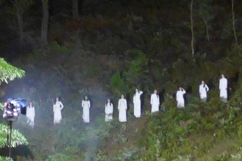 Hình ảnh 10 cô gái mặc áo dài trắng đứng trên đồi thông gây tranh cãi trong chương trình “Đồng Lộc – Bài ca bất tử”.