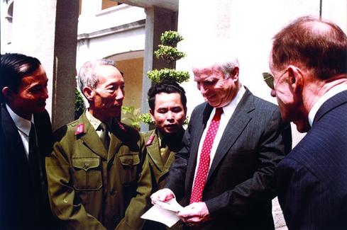 Trong một dịp lấy tư liệu cho loạt bài “Hà Nội - Điện Biên Phủ trên không”, tôi được gặp Đại tá Phạm Đức Đại, nguyên Giám đốc Bảo tàng Quân đội (nay là Bảo tàng Lịch sử quân sự Việt Nam). Có thể nói, với gần 50 năm quân ngũ, nhiều năm làm Giám đốc Bảo tàng Quân đội, ông Đại là một “kho tư liệu” về lịch sử Quân đội ta. Ông đã kể lại với chúng tôi những lần gặp gỡ, làm việc với Thượng nghị sĩ John McCain và John Kerry.