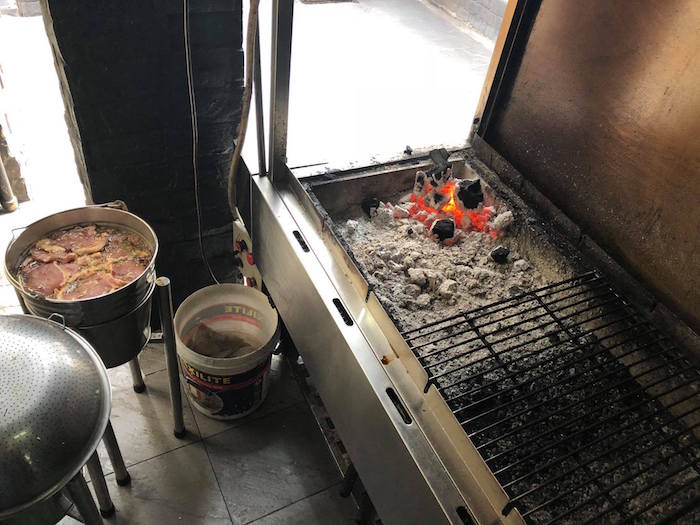 Xô thịt được đặt trên giá đỡ để tiện việc nướng than bị nhà báo đặt xuống nền nhà chụp ảnh và chú thích bốc mùi, có màu lạ...