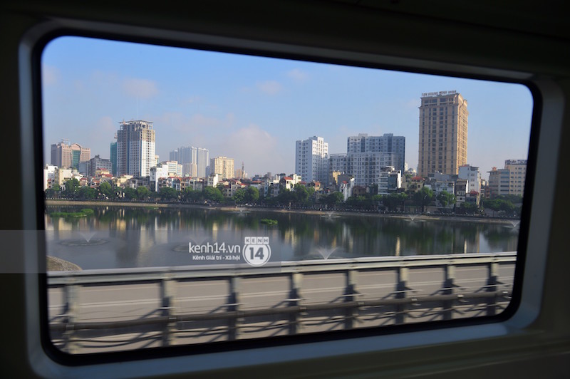 Đoàn tàu di chuyển qua hồ Hoàng Cầu (quận Đống Đa, Hà Nội).