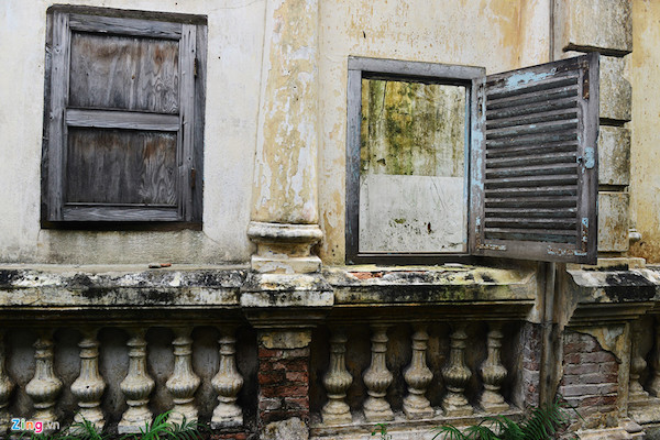 Chóp mái hiên nhô ra theo mô típ kiến trúc biệt thự cổ thời Pháp chưa bị phá bỏ. Tuy nhiên, với nhiều hạng mục, kết cấu bị xuống cấp, việc khôi phục, việc trả lại hiện trạng ban đầu là rất khó.