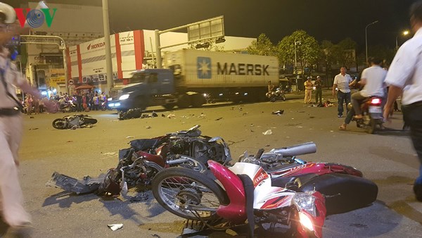 Chưa dừng lại, chiếc xe này tiếp tục lao lên phía trước đâm vào chiếc xe taxi biển số 51A – 398.67 đang rẽ vào vòng xoay. Có một người đi xe máy bị vướng dưới gầm xe kéo lê hàng chục mét tử vong ngay tại hiện trường, 5 chiếc xe máy vỡ nát, 2 chiếc ô tô cũng bị nát phần đầu và hông xe, móp méo biến dạng.
