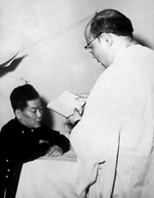 Linh mục làm lễ rửa tội cho Ngô Đình Cẩn trước giờ ra pháp trường.