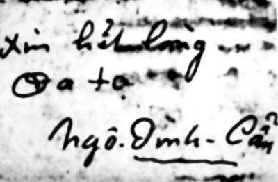 (Ngô Đình Cẩn là con út trong nhà nên hay được gọi là cậu Cẩn. Sau này khi Ngô Đình Diệm giành được quyền lực thì Ngô Đình Cẩn cũng được coi là nhân vật cực kỳ thế lực ở khu vực miền Trung, cho nên ai đến với Cẩn cũng không dám gọi tên mà chỉ gọi là ông Cậu).