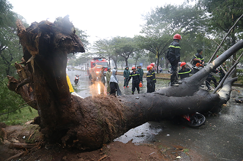 Tại gần cầu Ông Lớn đường Nguyễn Văn Linh (thuộc xã Bình Hưng, huyện Bình Chánh), cổ thụ đường kính gần một mét bật gốc trong mưa gió, đè trúng người đàn ông đang chạy xe máy. Nạn nhân bất tỉnh tại chỗ, được lực lượng chức năng đưa vào bệnh viện cấp cứu; xe hư hỏng nặng.