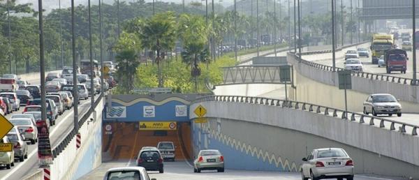 Đường hầm thông minh (SMART Tunnel) ở Kuala Lumpur, Malaysia trong điều kiện thời tiết bình thường được sử dụng như hầm đường bộ cho xe cộ qua lại. Ảnh: The Star