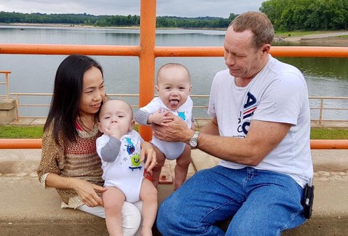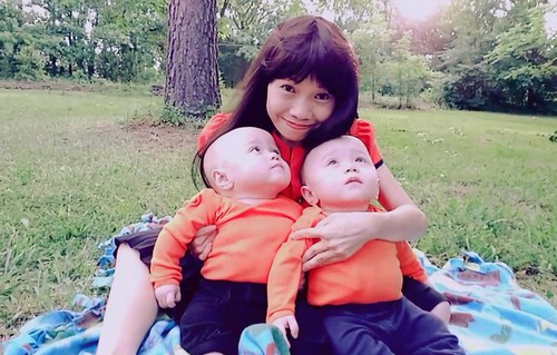 Mẹ Việt tí hon bận rộn chăm con sinh đôi bên người chồng Mỹ. Chị Xuân chỉ cao 1,27 cm. Do đó, người mẹ tí hon không thể bế nổi hai cậu con trai.