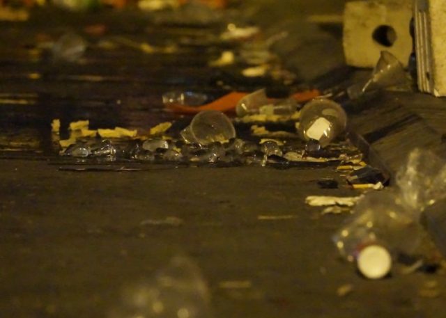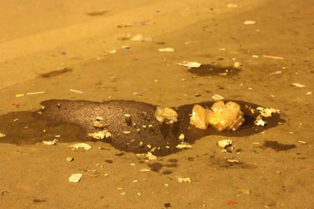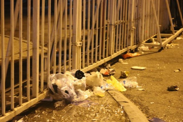 Đến gần nửa đêm, khi lượng người đã thưa dần, trước sân vận động Mỹ Đình chỉ còn lại rác bủa vây gây mất mỹ quan đô thị.