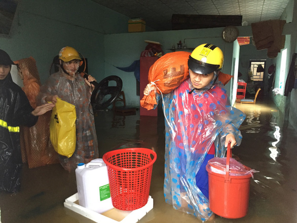 Nhiều giờ cố thủ đợi nước rút, nhóm người thuê trọ này buộc phải dời đi lúc 13h chiều vì nước vẫn tiếp tục lên cao - Ảnh: B.D