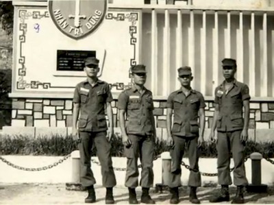 Tôi và Nguyễn Lương Thịnh, biệt hiệu Thịnh nhóc thường đánh bóng bàn với tôi, cùng tôi, tay cầm súng, tay gạt các nhánh sậy che phủ con đường ṃn sau núi, chạy hộc tốc như bị cọp đuổi sau lưng. Chúng tôi ra tới Băi Trước và nhận ra t́nh trạng náo loạn ngoài đường phố, tiếng đạn nổ tứ tung, dân chúng ai cũng đóng chặt cửa trốn trong nhà. Thật không khác một đám loạn kiêu binh. Tôi thấy ở phía trước mặt khoảng 200 thước, một Thiếu Sinh Quân cũng cầm súng như tôi, bị một người lính, không biết ta hay địch giả dạng, hành hung và giật lấy khẩu súng. Tôi không hiểu v́ sao. Hoảng hốt, tôi và Thịnh vội vàng vứt súng và quay ngược chạy trở về trường, mệt và khô cổ đến đắng họng. Chẳng hiểu sao chúng tôi lại có thể chạy liên tục từ trường ra Băi Trước rồi từ Băi Trước quay ngược trở lại trường. Về đến gần trường, tôi chợt nhớ ra gia đ́nh người bạn cùng liên lớp là Tô Trích Long Vân. Cha của Vân là Thiếu úy Tô Trích Mầu, một cán bộ của trường và gia đ́nh nằm trong khu gia binh gần trường. Thế là chúng tôi chạy đến gơ cửa xin tạm náu.