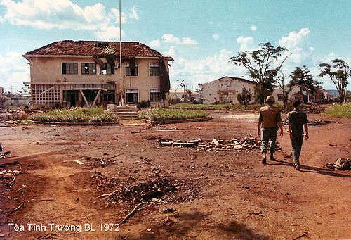 Tôi đón xe lam đi ngă ba Vĩnh Kim vào buổi sáng hôm sau. Đầu c̣n váng vất v́ chai rượu đế uống với Vĩnh chiều hôm trước. Chiếc xe cũ chạy trên hương lộ gập ghềnh làm tôi tỉnh táo dần. Đến gần khu chợ, gặp lại Chương, một sĩ quan khóa đàn em cùng dân Vơ Bị đang ngồi trong một quán cóc bên đường. Tôi xuống xe khoác ba lô đi dọc theo lộ. Chương nh́n ra kêu “Niên trưởng, niên trưởng…” Anh em gặp lại nhau mừng rỡ. Chương bảo “Anh về thế anh Lê Ba phải không?” Tôi gật đầu. Ba, bị tử thương trong trận đánh mấy hôm trước, Liên đại đội phó bị thương nhẹ hiện đang nằm quân y viện.
