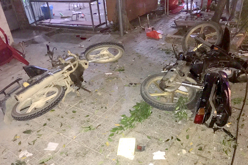 Cảnh xe khách lao vào bàn nhậu.