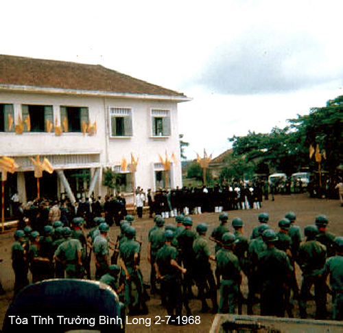 Về đến trường, các bạn cùng liên lớp với tôi như Lâm A Sáng, Phạm Ngọc Tŕnh, Nguyễn Văn Minh... cũng đă có mặt. Tôi nhận thấy các bạn đă phá kho vũ khí của trường và đang h́ hục khuân vác súng đạn ra các ổ canh gác. Một toán Thiếu Sinh Quân khác th́ đang xả thịt một con ḅ, lui cui nấu ăn và luộc thịt. Thế là tôi vớ lấy một cái nón sắt, chụp một khẩu Carbine, cùng với Thịnh, cũng trang bị y hệt, lúc nào cũng kè kè bên cạnh. Hai đứa chúng tôi tự xem trách nhiệm tổ chức canh gác như nhiệm vụ được anh em giao phó.