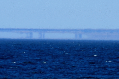 Một ảo thị phức tạp (Fata Morgana) ở Santa Cruz, California (Mỹ), đường bờ biển được nhìn từ Moss Landing vào tháng 7.2007. Ảnh: Brocken Inaglory/Wikimedia Commons.